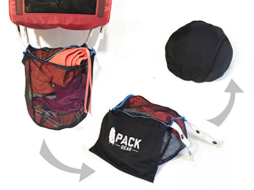 Product Description This lightweight, detachable laundry hamper is designed to store up to one week of lightweight, dirty items. It's perfect to conveniently separate socks, underwear, bras, t-shirts, and other delicates from the rest of your clothing. When the mesh hamper is filled, simply use the attached spandex "cape" to compress your clothing and keep smells at bay. Compression and odor protection! The laundry hamper is a must have for any trip! 0