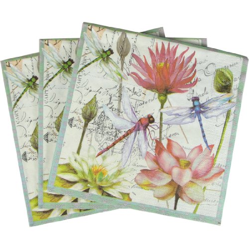 Cocktail Size Zanzibar Dragonfly Floral Disposable Elegant Napkins