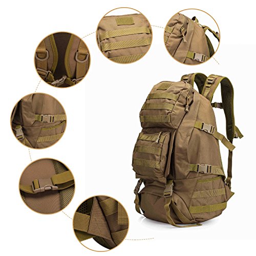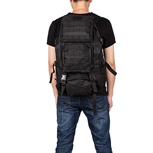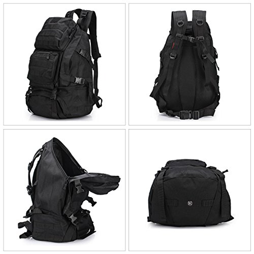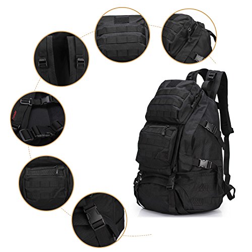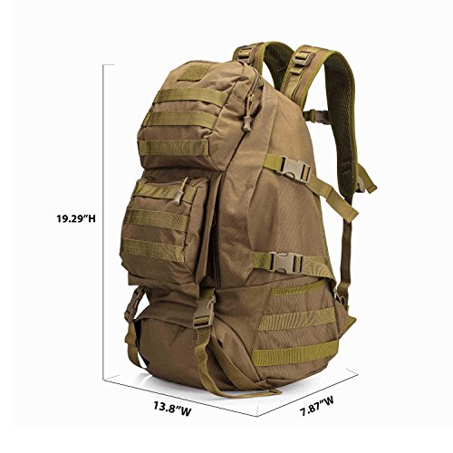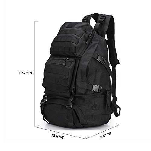 -. Feature : Material: 12.99"L x 5.91"Wx 19.69"H; 35L Capacity; 1.4kg; Made of Water-resistant 600D Oxford fabric, make the military backpack have strong Waterproof performance and Anti-scratch wear resistance.Outer Material: High strength abrasion nylon;Inner Material: Waterproof Silky Cotton; Good hardware,stronger zippers and buckles ,make it more durable and strengthen ,very comfortable to carry through trails and up and down mountains. / Ergonomic design, Comfortable wear: 1.There are loops on the bottom of this backpack. On the bottom strapping, you can easily accommodate a tent, rolls or sleeping bag;2.The shoulder strap with cushion can ease the pressure on the shoulder. The breathable sponge on the back can dissipate heat.Patch areas, which you can add favorite unique Patch to decorate this fanny pack and show your style! / MOLLE system: The molle straps are great for adding extra pouches.You can load smartphone pouch, water bottle bag, fanny pack/Waist Bag, Messenger Bag,accessory kits and others / Crafts: All the stitching and webbing, are used in military specification nylon material, longer straps slider, sleek, durable; Padded and adjustable shoulder straps, breathable mesh backing provides a cool feel in hot weather; Thickened computer protective interlayer inside; Adjustable waist and sternum strap. / Suitable: For running, hiking, camping, hunting, cycling, shopping, photography,traveling, climbing, sport, go to school, tools bag and so on