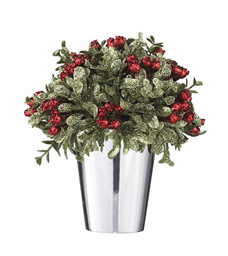 Ganz Kissing Krystals Mistletoe and Berries Topiary in Silver Pot - Christmas Table Centerpiece
