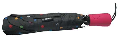 -. Brand : Totes -. Department : womens -. Feature : Polyester / Auto open / Provides quick weather protection / Fits into your bag, car or briefcase / 42" Arc -. ProductGroup : Apparel -. ProductTypeName : LAGE -. Title : Totes Ladies Signature Basic Automatic Compact Umbrella