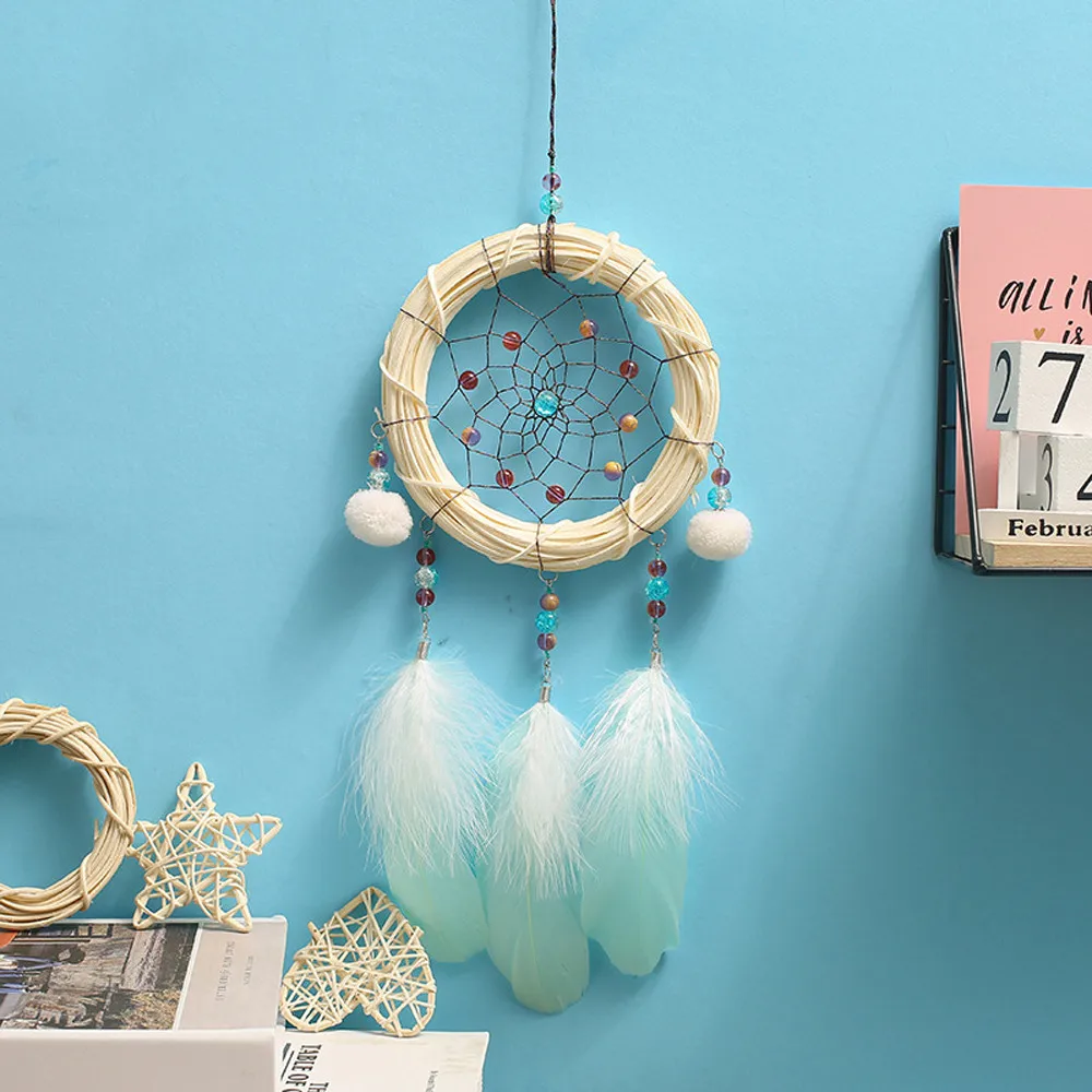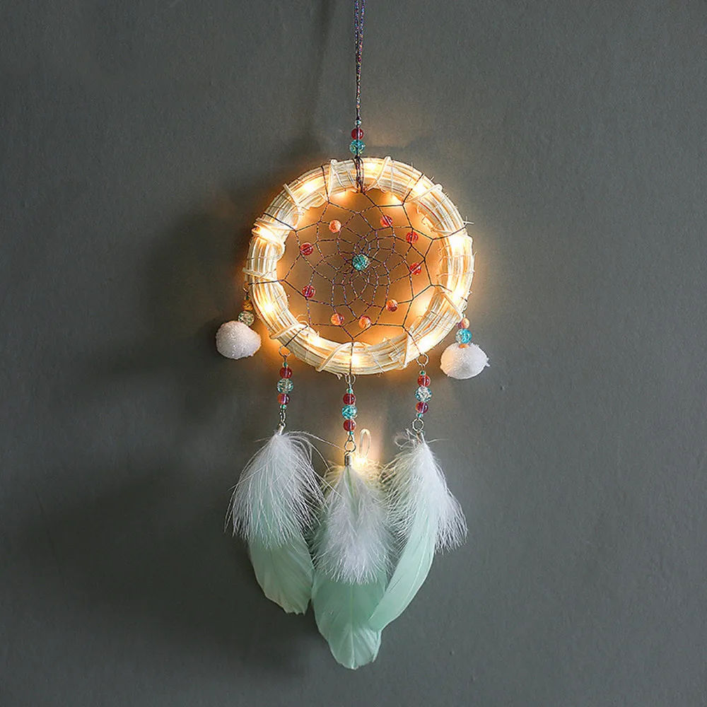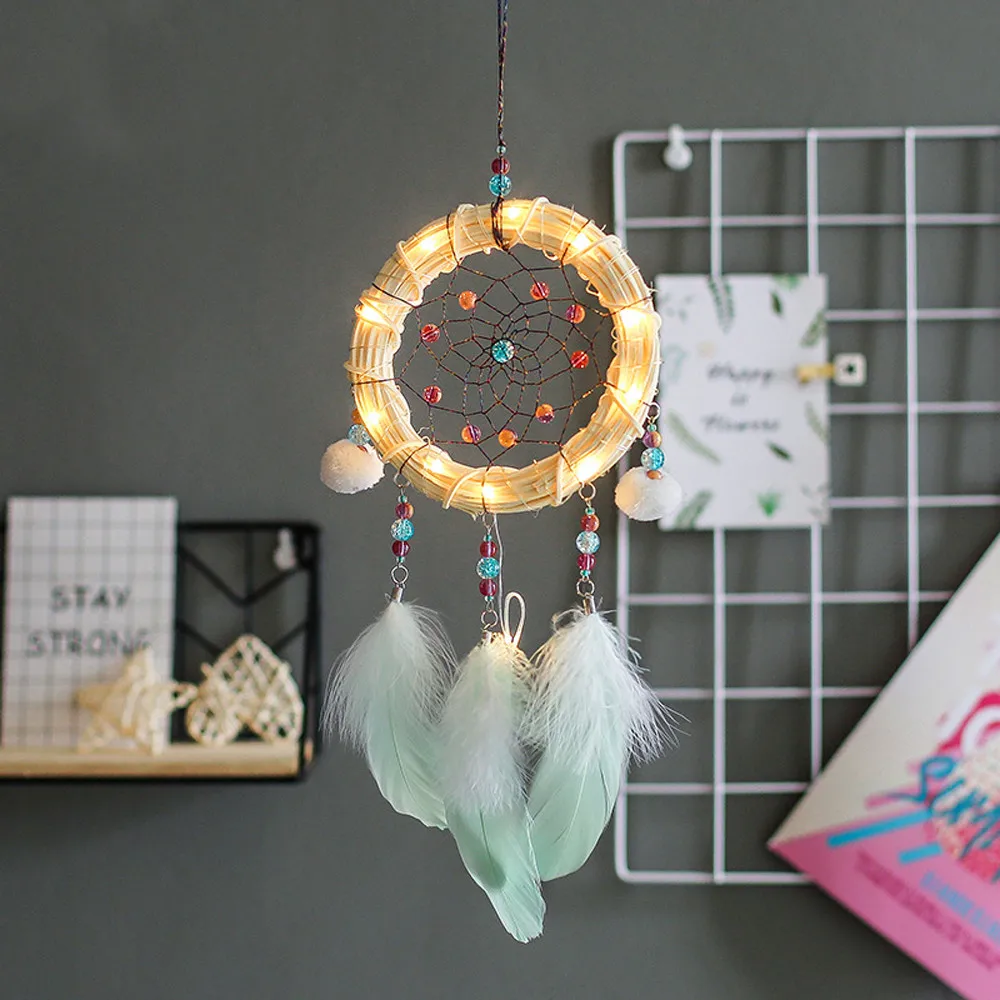Handmade Dreamcatcher Feathers Night Light Car Wall Hanging Girl Birthday Gift Baby Room Home Decor nordic baby room wind chimes