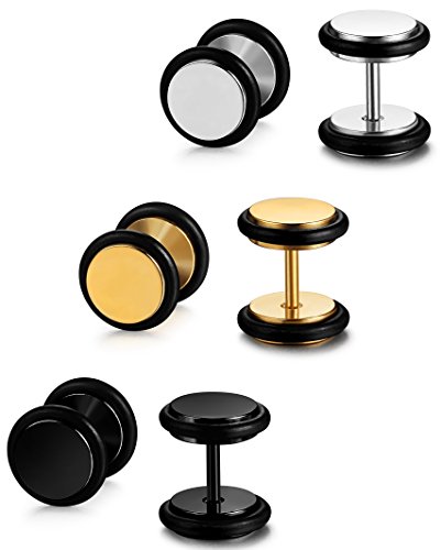 -. Title : Gelmushta 3ペアセット スタッド ピアス メンズ レディース バーベルスタイル 丸型 両耳用 全3色 ステンレス製