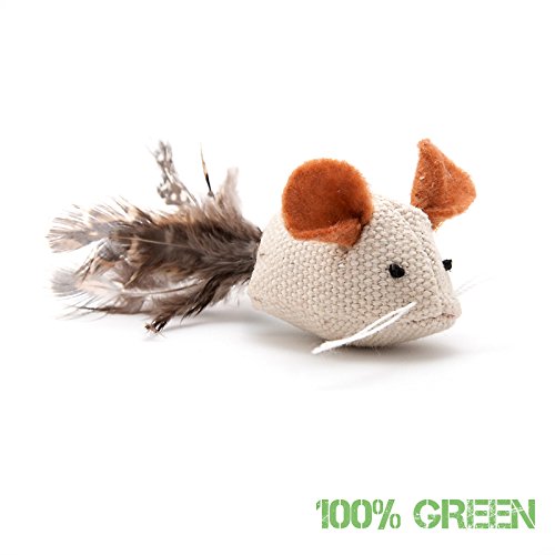 -. Feature : 2 Stück Spielzeugmäuse aus Jute mit Watte gefüllt / echte 10cm lange braune Federn / Mäuse animieren zum jagen, spielen und reinbeißen / aus natürlich, nachhaltigen Materialien gefertigt / extra gut vernähter Schwanz für lange Haltbarkeit