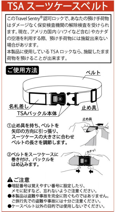 | とても目立つユニオンジャック柄のスーツケースベルト。 |