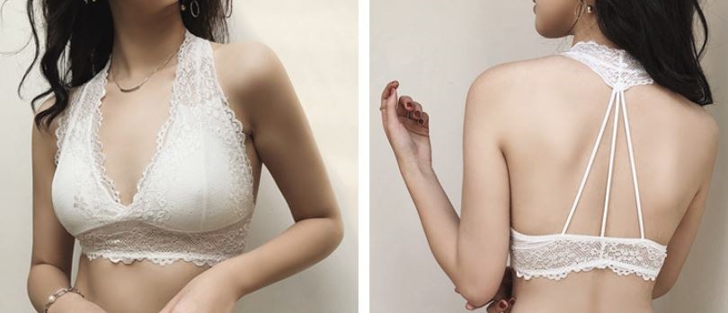 ホルターネックの後ろの首元からアンダーバストまで