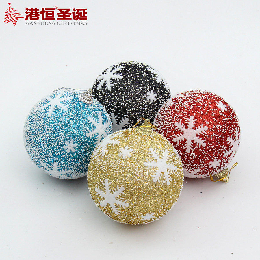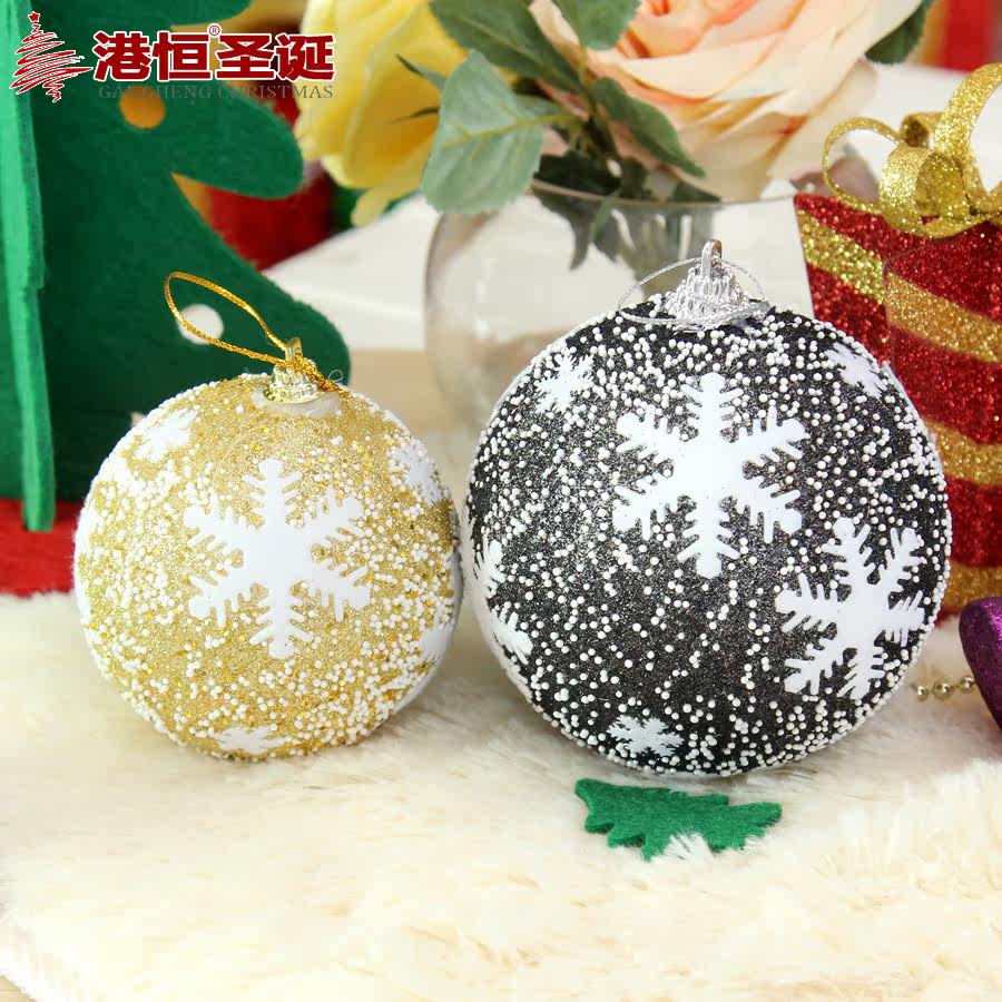 港恒圣诞球8cm黑色沾雪泡沫球 金红雪景圣诞树装饰圣诞彩球 20g