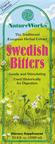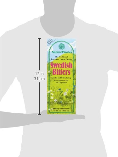 -. Binding : Health and Beauty -. Brand : Nature Works -. EAN : 5056018942042 -. Feature : Promotes regularity for healthy digestive function / The Traditional European Herbal Extract Swedish Bitters / Artfully blended extract of selected herbs of unsurpassed quality -. IsAdultProduct : 0 -. IsAutographed : 0 -. IsMemorabilia : 0 -. Label : Nature Works -. LegalDisclaimer : Actual product packaging and materials may contain more and different information than what is shown on our website. We recommend that you do not rely solely on the information presented and that you always read labels, warnings, and directions before using or consuming a product. Please see our full disclaimer below. -. Manufacturer : Nature Works -. Model : 10051000 -. MPN : 020065100071 -. NumberOfItems : 1 -. PackageQuantity : 1 -. PartNumber : 020065100071 -. ProductGroup : Health and Beauty -. ProductTypeName : HEALTH_PERSONAL_CARE -. PublicationDate : 2014-12-30 -. Publisher : Nature Works -. ReleaseDate : 2014-12-27 -. Size : 33.8 -. Studio : Nature Works -. Title : Nature Works Swedish Bitters, 33.8 Fluid Ounce -. UPC : 020065100071