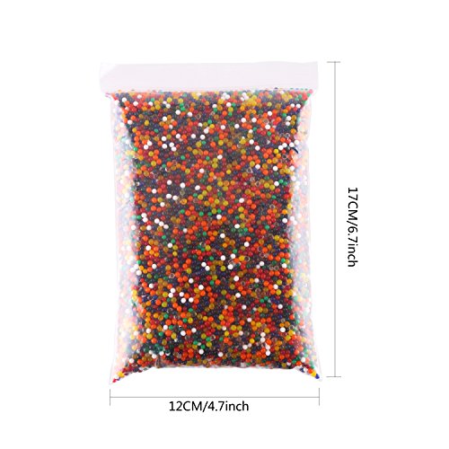 Color: Rainbow mixed color. Such as green, transparent, red, blue, yellow and more. Leave these in water without them degrading and the color do not fade nor dye. Circular particles with high elasticity and good toughness.