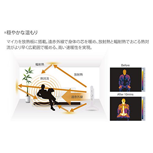 ●穏やかな温もり:マイカ素材の放熱板を搭載し。遠赤外線で身体の芯を暖め、放射熱と輻射熱による熱対流がより早く広範囲を暖める