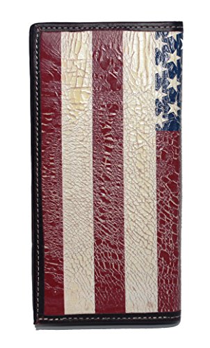 -. Binding : Apparel -. Brand : Genuine Texas Brand -. ClothingSize : Large -. Color : Brown -. Department : mens -. EAN : 0753447275523 -. Feature : A Proud Don't Tread On Me Concho mounted on a Beautiful American Flag Wallet / Brown hand-tooled rodeo wallet with vintage distressed and screenP.R.Inted flag inlay / Protective ID window and 5 card slots / With Two currency pockets and Checkbook and register inserts / Measures approximately 7 1/4" x 3 1/2" -. Model : USA-DTOM -. ProductGroup : Apparel -. ProductTypeName : ACCESSORY -. Size : Large -. Title : Custom Don't Tread On Me American Flag Long Wallet with a Distressed United States Flag -. UPC : 753447275523
