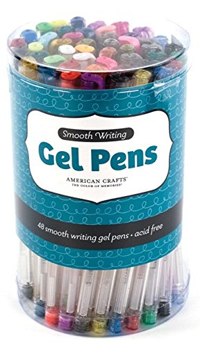Super smooth glitter packed gel ink and vibrant metallic make these pens a favorite among scrapbookers and card makers. They are great for journaling, titling, drawing, and all-purpose writing. Glitter gel pens write like butter (or maybe more like milk) and easily wash off of skin so they are safe for children to use too. This package contains forty-eight pens in a variety of glitter, metallic, pastel, and bright colors. Imported.
