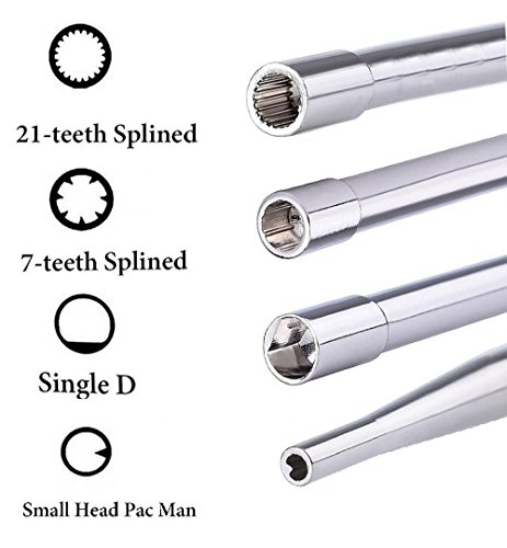 Comes with 21 Teeth Splined + 7 Teeth Splined + Single D + Small Head Single D + Double D + Pac Man + Small Head Pac Man + Hexagon