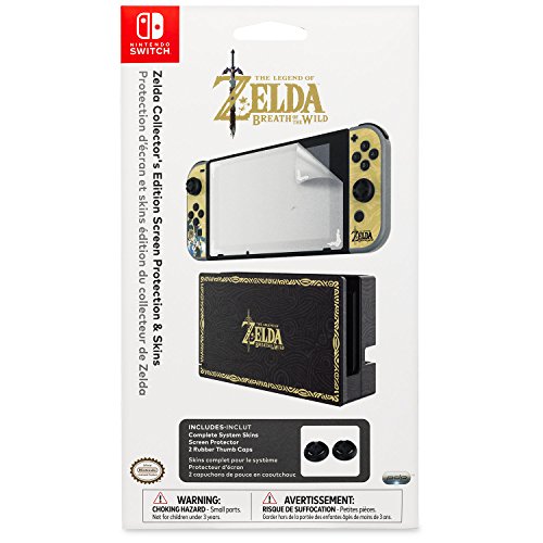 -. Feature : Officially licensed by Nintendo / Matte skins for Switch console and dock / Simple mess-free removal / Includes 2 rubber thumb caps / Zelda: Breath of the Wild inspired design