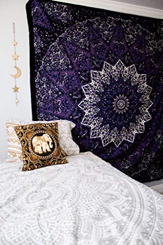 Popular tapestry Twin Hippie Mandala Bohemian Psychedelic Intricate Floral Design Indian Bedspread Magical Thinking Tapestry 84x54 Inches,(215x140cms) Blue Purple By Popular Handicrafts
