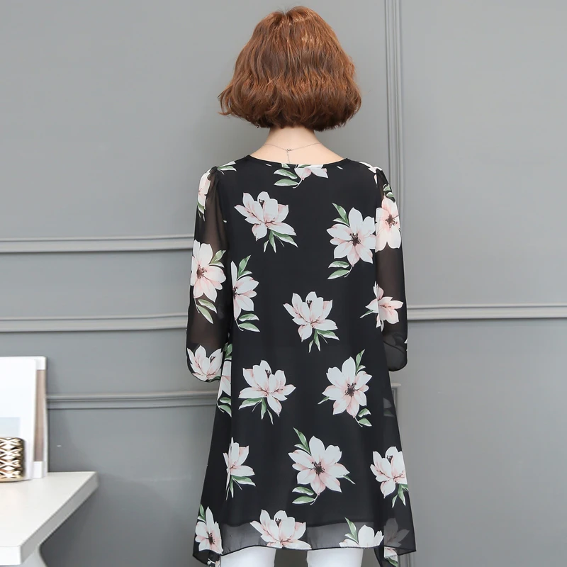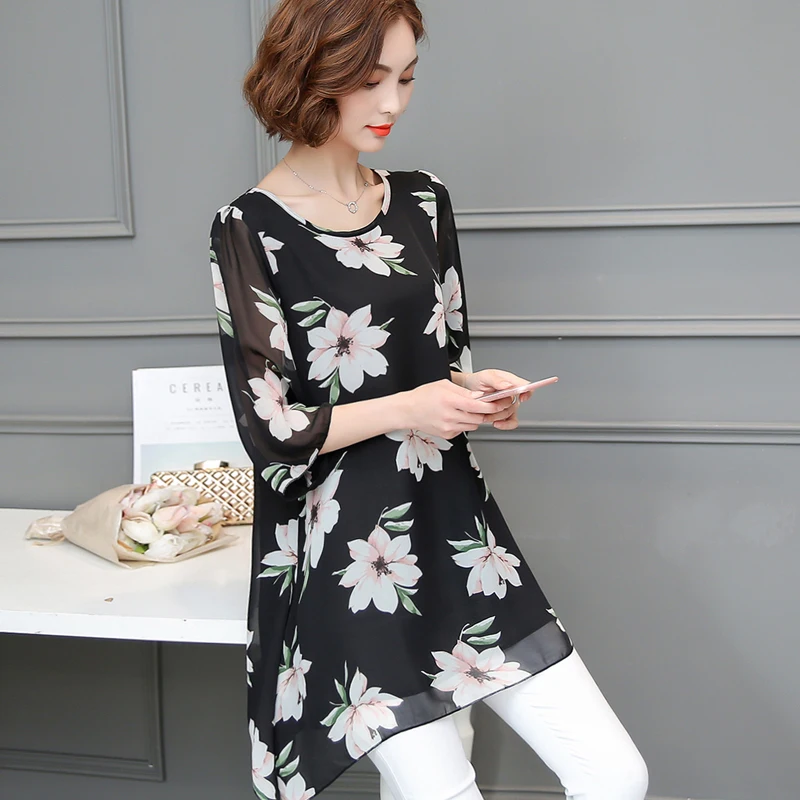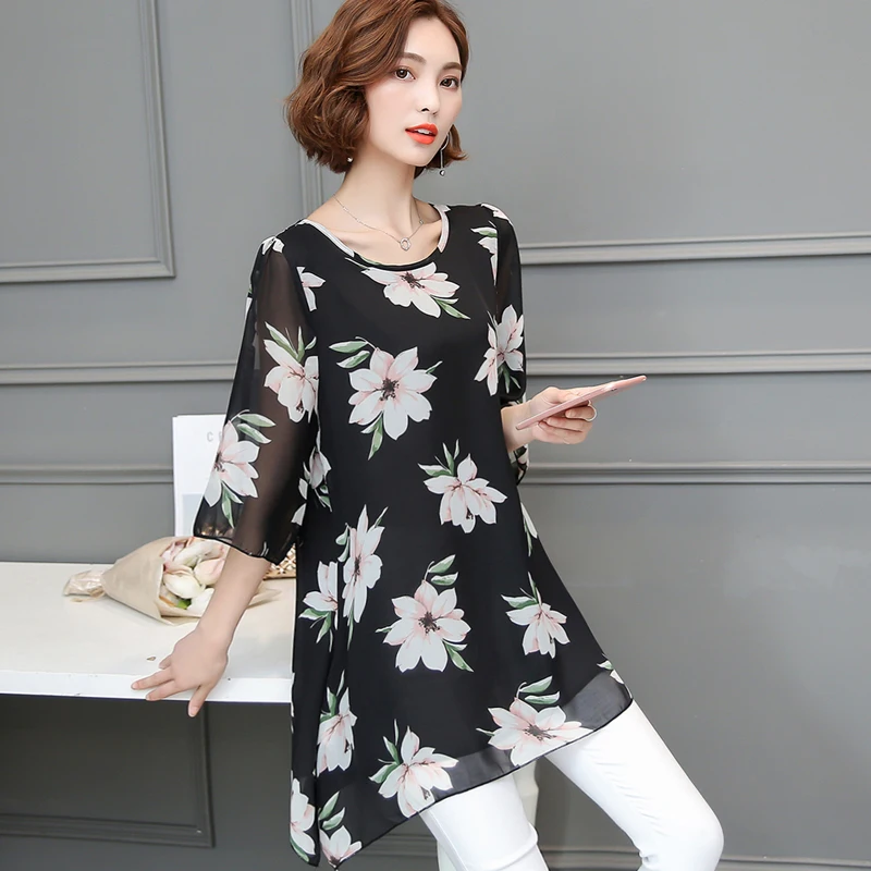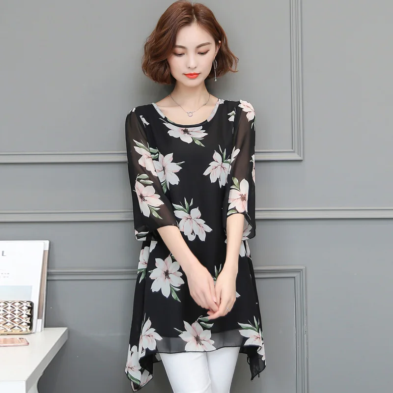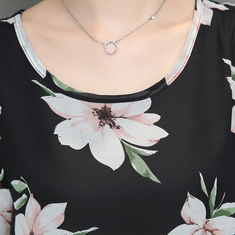 Model Number: 6XL Plus Size Short Sleeve Flower Print Chiffon Blouse Shirt