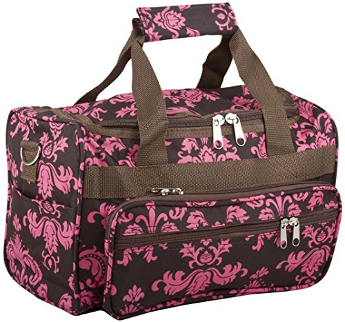-. Title : World Traveler Brown Pink Floral Damask Duffle Bag 22-inch