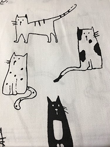 Pair of 2 Standard Size 100% Cotton Pillowcases - Whimsical Black and White Sketches of Cats