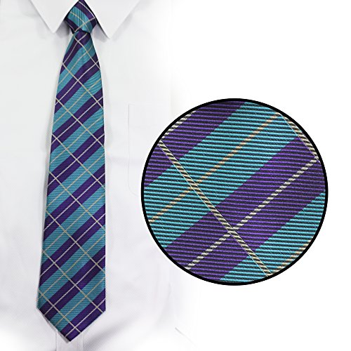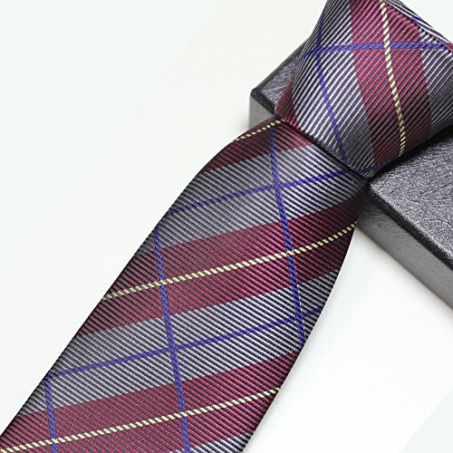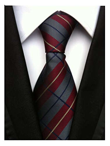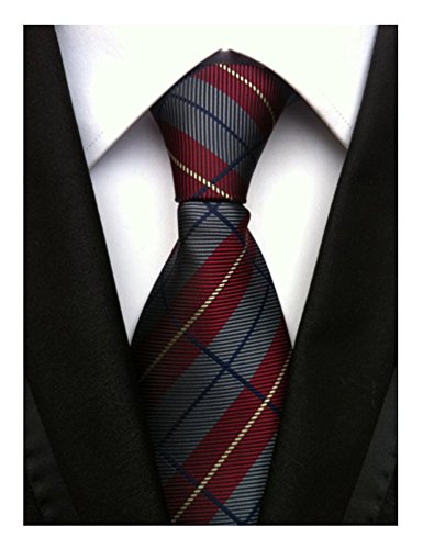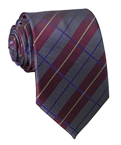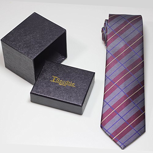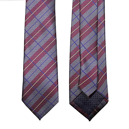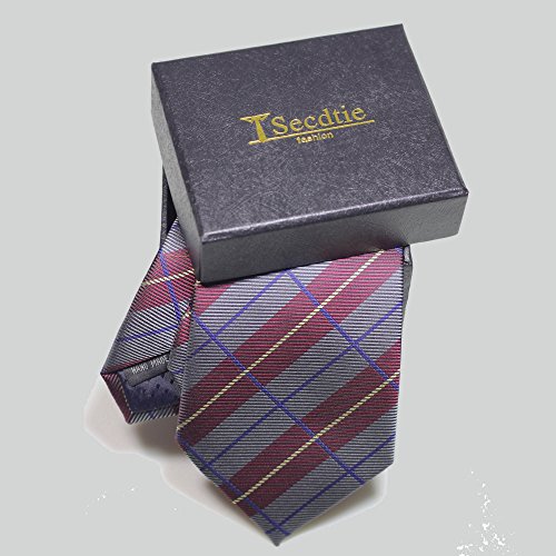 1.The slim cut of 3.15" is the perfect compliment to the modern plaid design in grey and dark red.