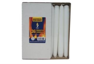 White Taper Candles 8 Inche Burns 7 Hours - 1 Box of 36