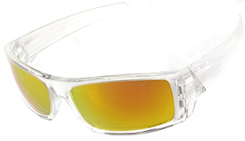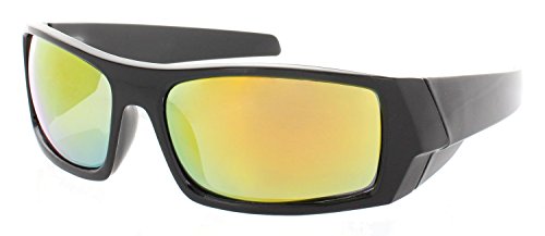 Your choice of either super dark, silver mirror or revo lens. Locs inspired frame design.