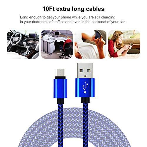 10Ft long Cable, you can lie on the couch and use your devices while you are charging at the same time. And you can still use freely in in your bedroom, office and even in the backseat of your car. One year warranty and friendly easy-to-reach customer service available