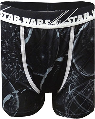 -. Binding : Apparel -. Brand : WebUndies.com -. Color : Black/Grey -. Department : mens -. Feature : 92% Polyester/8% Spandex / Elastic Waistband / Machine Washable; Easy Care / Official Licensed Product -. Model : RWRO038 -. ProductGroup : Apparel -. ProductTypeName : UNDERWEAR -. Title : Star Wars Rogue One Death Star Matrix Performance Boxer Brief for Men