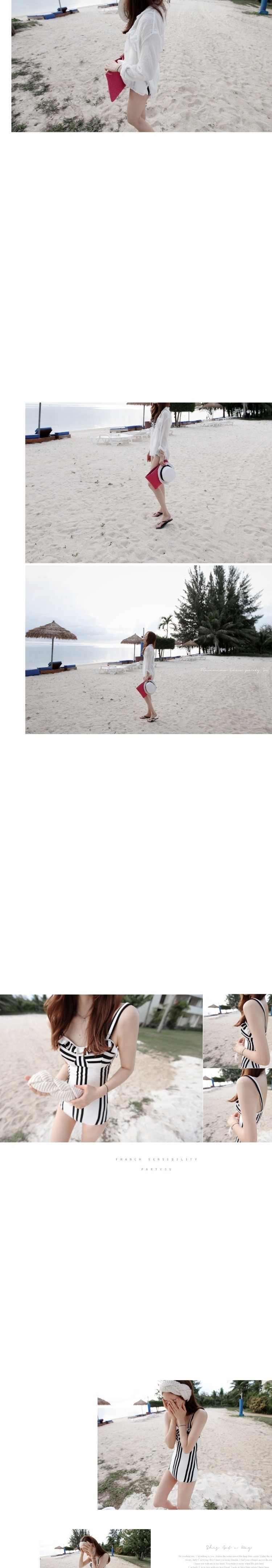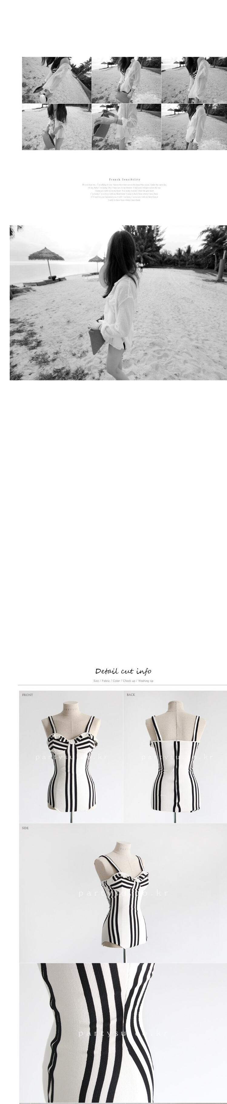 新款海军复古黑白条纹荷叶边吊带连体温泉女泳衣