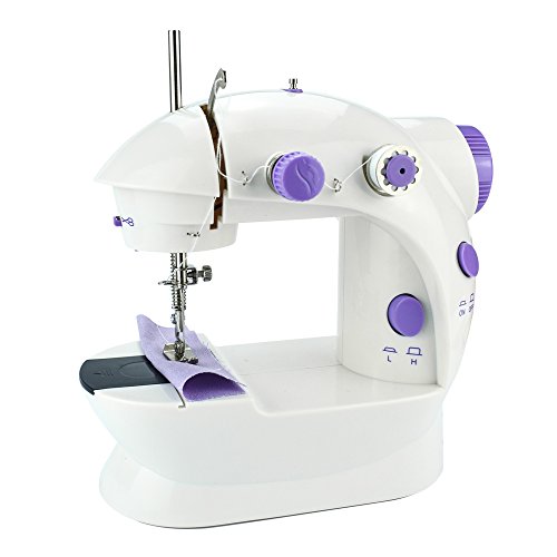 -. Title : Portable Sewing Machine - Mini 2 Speed Double Electric Thread Handheld Sewing Machine With Light,Cutter,Foot Pedal (White with Romantic Purple, 7.8 Inch)