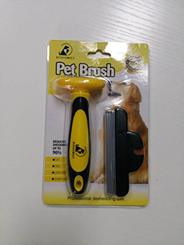 Pet Deshedding Tool, Dog Grooming Brush with Stainless Safety Blade Best Grooming Brush for Small Medium Large Dogs Cats Reduce Shedding Hair-Yellow01