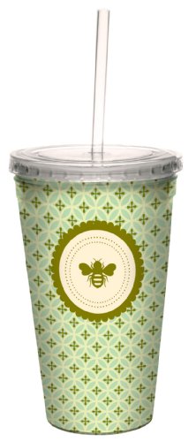 Tree-Free Greetings 80486 Contemporary Just Bee Artful Traveler Double-Walled Acrylic Cool Cup with Reusable Straw, 16-Ounce