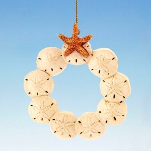 Resin Sand Dollar Wreath Christmas Ornament with Starfish Top