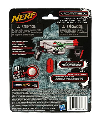 Studio : Nerf Publisher : Nerf Binding : Toy Product Description Get the edge in your next battle with the Nerf Vortex Tech Kit! Whether you favor a Vortex, a Praxis or a Nitron blaster (sold separately), the Tech Kit includes 10 orange discs and a magazine you can slam into your blaster when you're out of ammo! Load up your extra magazine and get ready to blast your way to victory! 0