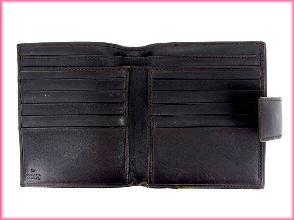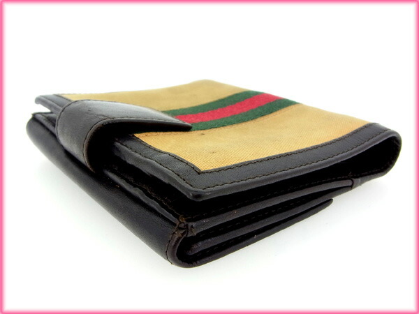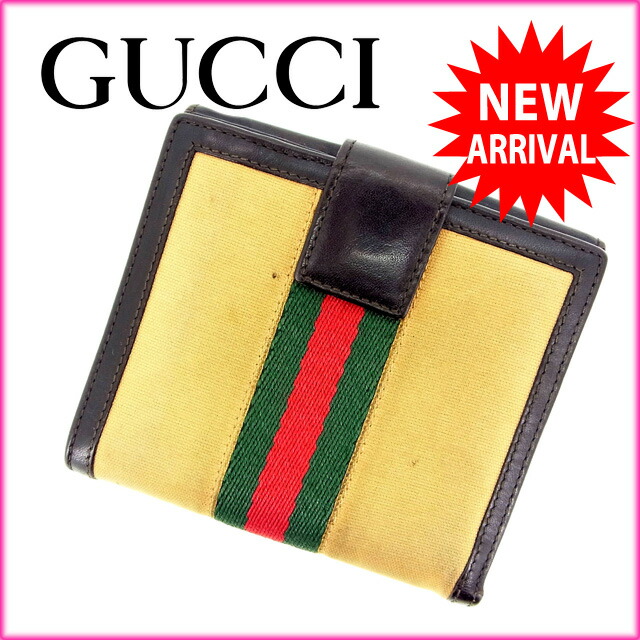 グッチGUCCIWホック財布/メンズ可シェリーブラウン×ライトブラウンキャンバス×レザー(あす楽対応)(激安・即納)【中古】Y365