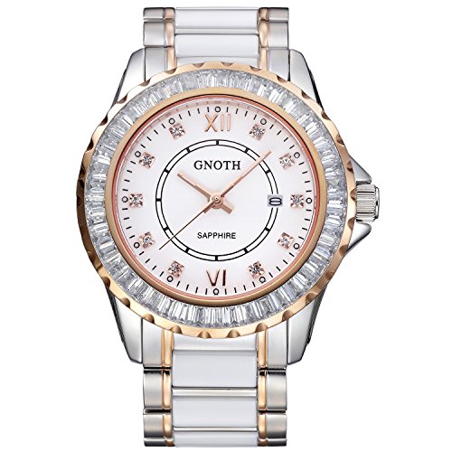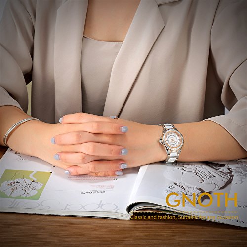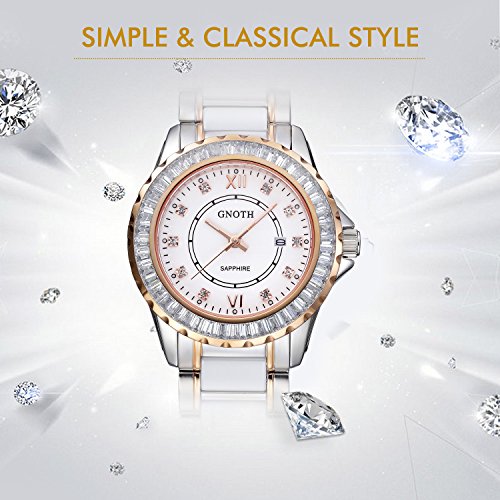 -. Title : (ガオノ) GNOTH 腕時計 ホワイトクオーツウォッチ 30m防水 カレンダー ステンレスとセラミックスバンド ダイヤ レディース [並行輸入品]
