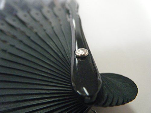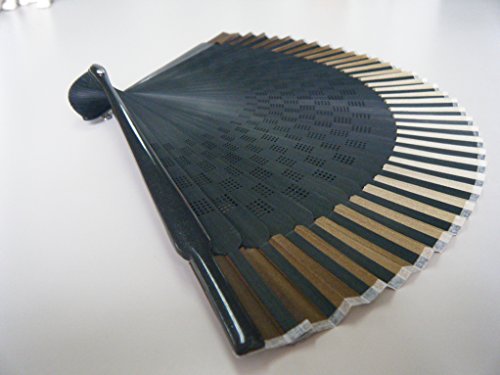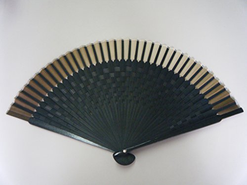 ASAO Hand Made Artisan Men's Short Fabric Silk Sensu Folding Fan Black Guard 8.7 In 40 Folds Laser Treated Ribs Checked Pattern Gold