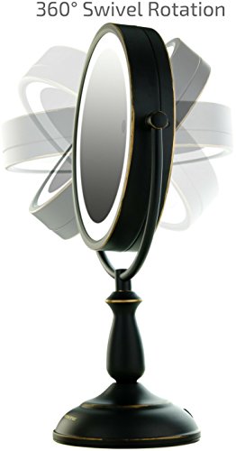 - COMPREHENSIVE – This dual-sided 360° swivel design luxury mirror features 1x7x magnification. 1x for a great view of your entire face all at once, and 7x for precision, because every detail counts (8.5” diameter)