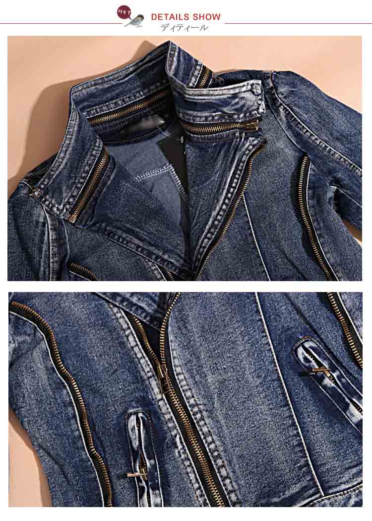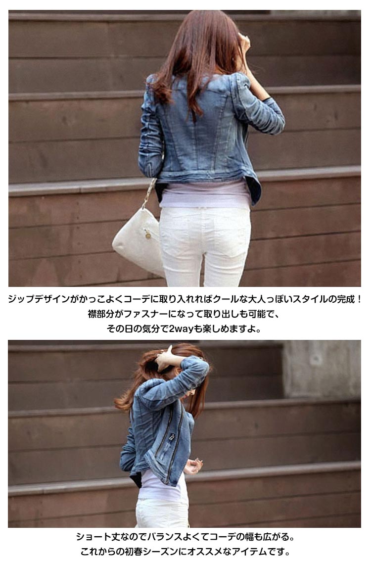 | クールなライダース調デニムジャケットが登場!ジップデザインがかっこよくコーデに取り入れればクールな大人っぽいスタイルの完成!襟部分がファスナーになって取り出しも可能で、その日の気分で2wayも楽しめますよ。ショート丈なのでバランスよくてコーデの幅も広がる。これからの初春シーズンにオススメなアイテムです。 | |