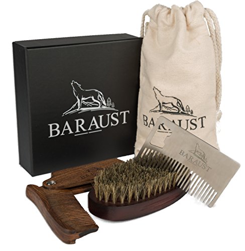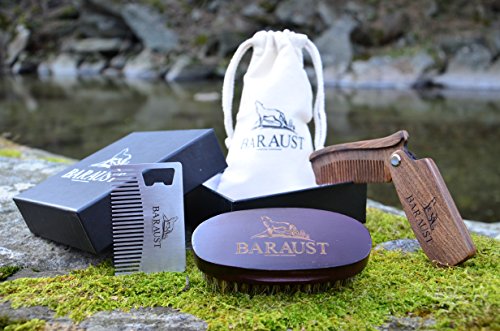 Baraust Beard Grooming Kit For Man Care - Beard Bush, Beard Folding Comb and Beard Wallet Comb - Beard Set - Highly resistant - Beard Brush and Comb...