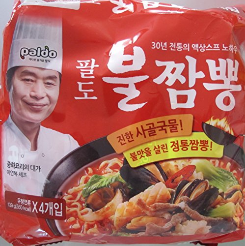Paldo Bul Jjamppong Noodle Soup, Spicy Seafood Flavor, 4.90 Ounce (Pack of 4)