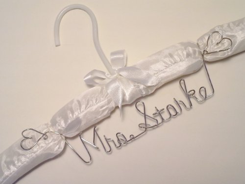 - Title : Bride Dress Hanger - Personalized - Silver Wire Craft -White Padded Hanger ANY NAME, Bridal Wedding