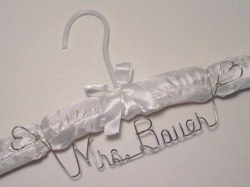 - Feature : Personalized Bride Dress Hanger - White padded hanger / Handcrafted with quality non-tarnish silver copper wire / ANY NAME MADE in classic readable script / Orders are designed and mail with in 1 - 3 business days / Mother of the Bride - Groom - Mother of the Groom - Wedding Party