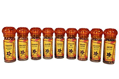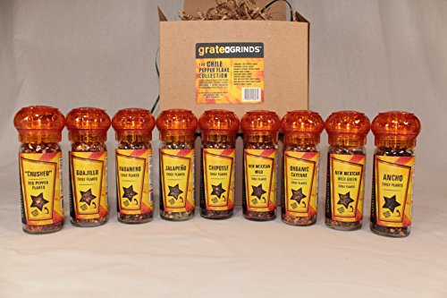 -. Feature : Collection of 9 different chile flakes in a gift box