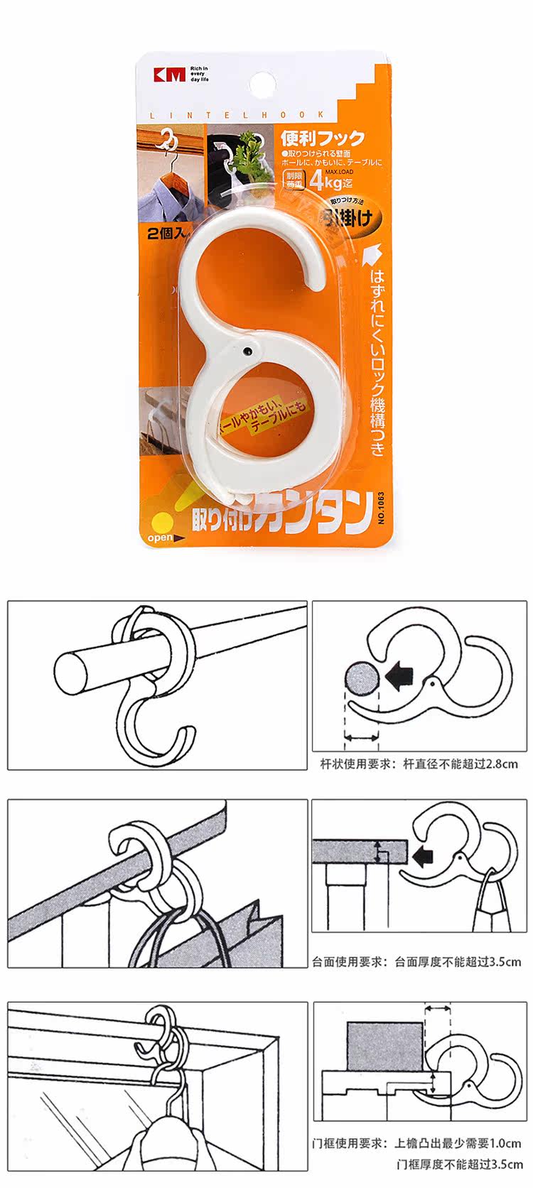 日本のカードビットSSフックフックバッグワードローブの定番フリー寮シームレスなバッグフックフック2ロードされた乾燥