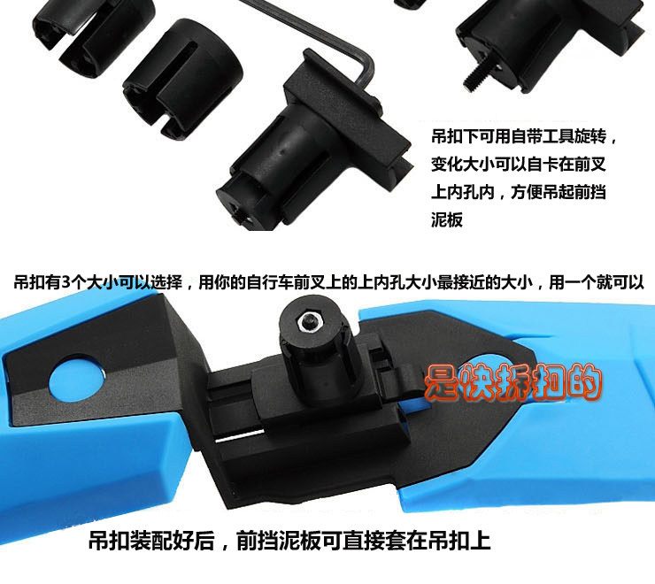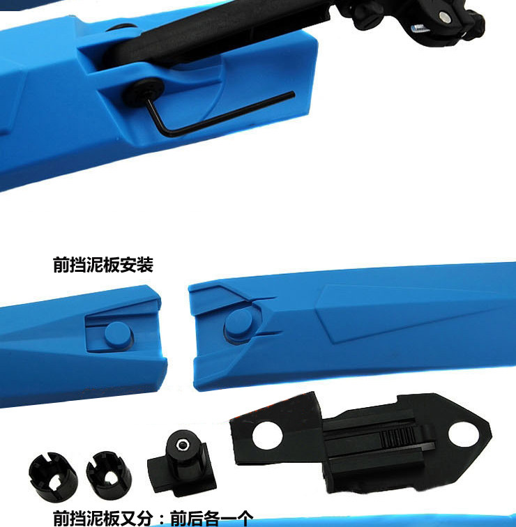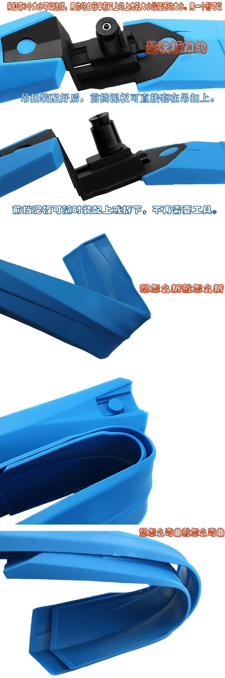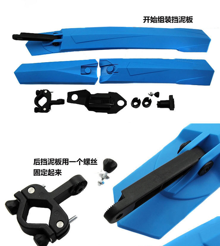 友情提醒: 由于各类自行车厂家更新型号极快,请买家们先看清楚安装条件,再购买,如果买回去装不上,可以退,但来回运费要自己承担!谢谢配合! 前后采用简易快拆设计,拆卸简单方便,固定牢靠简单。 前后尾端采用高级软性橡胶弧形设计,大大提高挡水效果。 适合所有山地车,特别是高端山地车。