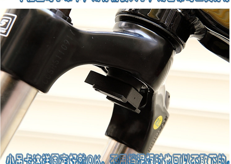 安装条件: 前叉安装底部口径17-25.4mm(带3个前叉底部安装抓) 如果都不够大 的话就需要自行+垫些橡胶片即可。 后面安装口径25.4-34.8mm