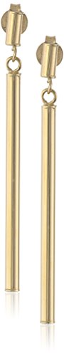 14k Yellow Gold Italian Linear Polished Drop Earrings