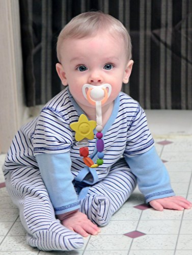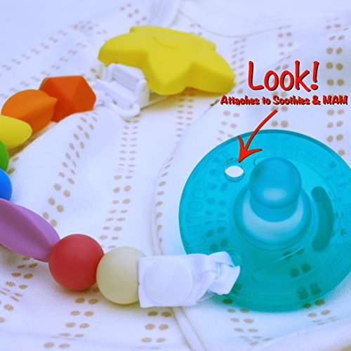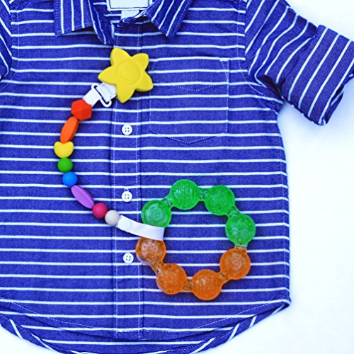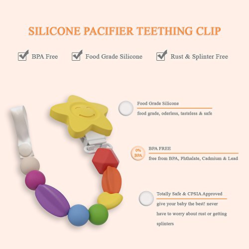 -. Feature : YOU HAVE FOUND THE BEST - Carefully crafted universal beaded paci clip safely attaches to your baby's or toddler's clothing. Bright and colorful chew beads supports brain development and provides superior visual stimulation. Our rainbow beads massage teething gums and soothes teething symp while promoting healthy tooth development / TIRED OF LOSING OR DROPPING THE PACIFIER? Little Sprouts teether clip is suitable for all types of pacifiers including Soothies and MAM. Easily attach it to teething rings, baby blankets, drool bibs, stroller and car seat straps / STRONG AND SAFE - Independently tested by a well known global company approved by CPSC/CPSIA. See our report in one of the images! Feel free to email us for the full report. 100% of the clips are also carefully inspected and tested by 2 separate inspection companies. Little Sprouts is easy to use. You don't ever have to worry about clipping your fingers or hurting your infant. Our special clips are designed to open and close easily but hard to pull off / NON TOXIC, RUST FREE AND EASY TO CLEAN - 100% BPA, PVC, phthalate and lead free! Silicone beads are food grade and has no taste or smell. Simply clean with disinfectant pacifier wipes and more sanitary than cotton strap pacifier clips / SATISFACTION GUARANTEE - Get yours today! 57% OFF SALE for a limited time. Buy more than 1 and save even more! (get coupon code under Special Offers)
