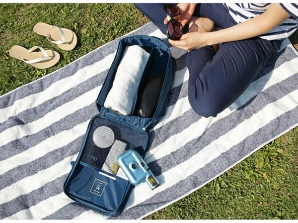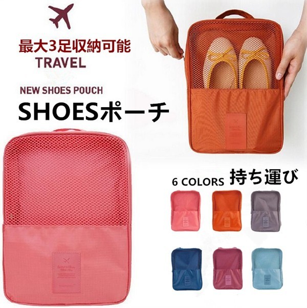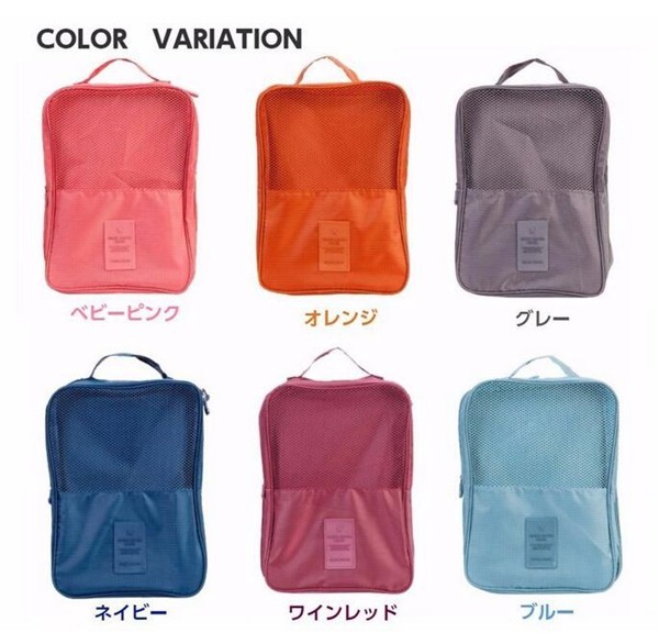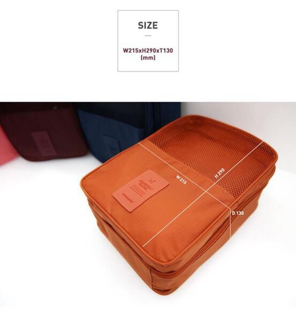 【サイズ】縦290mm×横215mm×高さ130mm【カラー】ベビーピンク、オレンジ、グレー、ネイビー、ワインレッド、ブルー【素 材】ナイロン(防水型) 旅行、ジム、海水浴、学校などさまざまなシーンで活躍するバッグが登場!中を開けると仕切り板が入っており、大きさによっては2足、サンダル1足で計3足収納可能です。(大きなシューズを入れると1足しか入りません)シューズだけでなく、タオルや下着の収納など使い方は自由自在です。素材はナイロンなので軽くて頑丈で、水に濡れても乾きやすいです。女性の方はもちろん男性やお子様にもおすすめのアイテムです。旅行にぴったり機能性バツグン収納ポーチ?バッグ、スーツケースの中をすっきり整理して収納できるバッグインバッグ。シンプルなデザインなので、男女問わず使っていただけます?