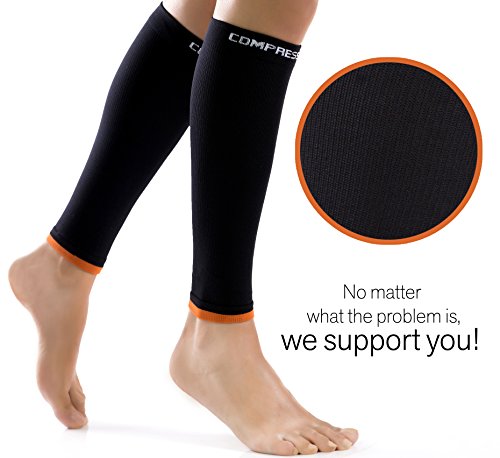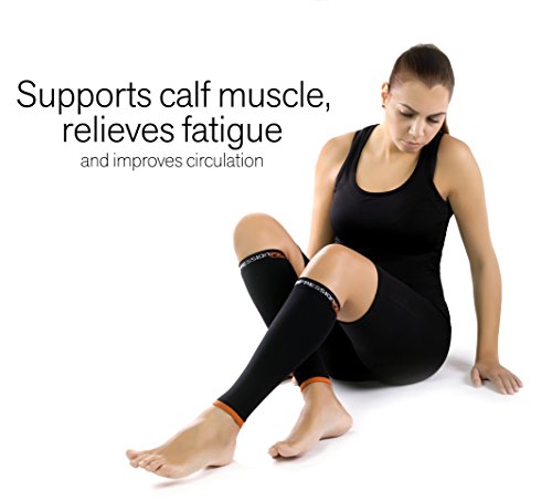 -. Feature : PROFESSIONAL GRADE COMPRESSION - When it comes to compression gear, not all are created equal. Some don't fit right, and some don't work right, but with CompressionFX calf sleeve, you'll be sure to get a quality fit with a true graduated compression strength of 20-30mmHg (superior compression), which will help improve performance while alleviating leg pain and swelling. / BUILT TO LAST - Not Too Thick Or Too Thin - Just Right! We Rigorously Test Each Pair Through A Stringent Quality Control Process And Guarantee They Will Last Dozens Of Washes While Maintaining The Same Level Of Compression And Circulatory Effectiveness. No Holes, Runs, Or Rips! Compare Our Results To CEP, Tommie Copper, McDavid, Run Forever Sports, Camden Gear, Thirty 48, & Zensah! / EXTENDED WARRANTY - up to 120 DAY MONEY BACK GUARANTEE after product registration. So, if your sleeves ever break down, we'll replace them, no questions asked. / NOT JUST FOR ATHLETES - Many of Our Customers Have Used These Compression Stockings to Naturally Treat (and help with symp of) Varicose Veins, Plantar Fasciitis, Extensor Tendonitis, Ankle Swelling, and other Conditions. Also Common for AIR TRAVEL, Especially for Those with Deep Vein Thrombosis (DVT) or Otherwise Prone to Blood Clots / ULTIMATE COMFORT - Professional Graduated Compression Sleeves. Perfect fit for men and women of wide range of calf sizes. Made with 80% Spandex and 20% Nylon Lycra, you'll feel the smooth comfort on each calf and your sleeves working from the moment you slide them on. Moisture wicking material ensures warmth comfort during the toughest runs & workouts. Shin compression sleeve with ultra-breathable innovative fabric with a Seamless design - no irritating socks tags or seams to cause discomfort.